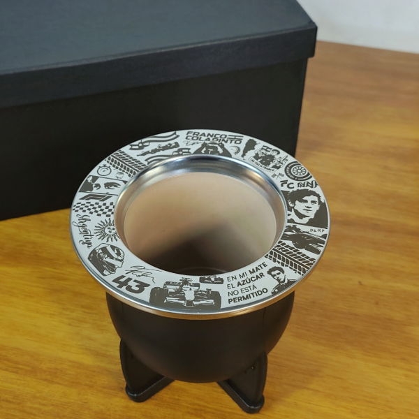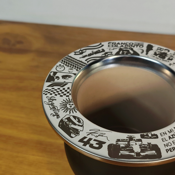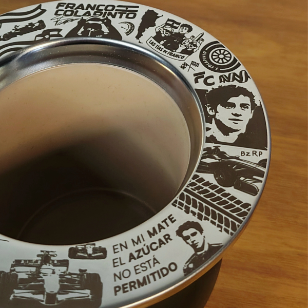 Grabado con ilustraciones exclusivas inspiradas en su casco, su firma, el número 43, el auto, y el logo de Las Tías de Franco.